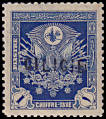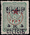 5 Piaster auf 2 Para grünblau, kopfstehender Aufdruck