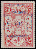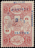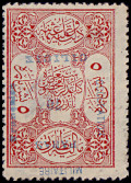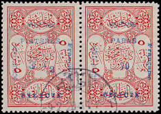 horizontal pair: left postage stamp 3½ Piaster with typesetting error "PIATSRES", right postage stamp 70 Para.