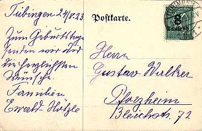 Inland postcard from 25.08.1923 (16. Period) franked with one stamp a 8 000 Mark on 30 Pfennig (=8 000 Mark)
