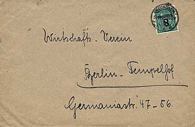 Local cover (1-20 g) from 31.08.1923 (16. Period) franked with one stamp a 8 000 Mark on 30 Pfennig (=8 000 Mark)