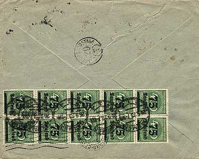 Auslandsbrief (1-20 g) vom 04.10.1923 (19. Periode) frankiert mit 80 Marken a 75 000 Mark auf 400 Mark (=6 Millionen Mark)