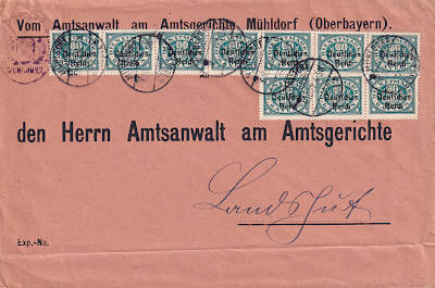 Inlandsbrief (1-20 g) vom 06.10.1922 (9. Periode) frankiert mit 10 Marken a 60 Pfennig (=6 Mark)