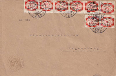 Inlandsbrief (1-20 g) vom 30.11.1922 (10. Periode) frankiert mit 8 Marken a 1½ Mark (=12 Mark)