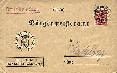 Inland printed matter (1-50 g) from 04.10.1920 (5. Period) franked with one stamp a 10 Pfennig (=10 Pfennig) |