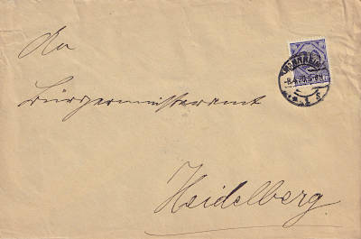 Inland cover (1-20 g) from 08.04.1920 (4. Period) franked with one stamp a 20 Pfennig (=20 Pfennig) |