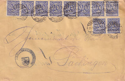 Local cover (1-20 g) from 04.08.1921 (6. Period) franked with 2 stamps a 20 Pfennig (=40 Pfennig) |