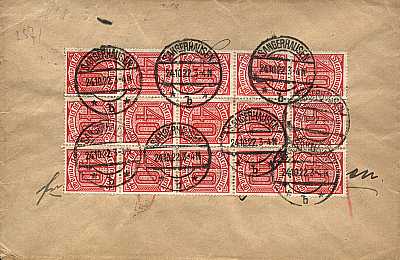 Ortsbrief (21-100 g) vom 29.08.1922 (8. Periode) frankiert mit 5 Marken a 40 Pfennig (=2 Mark) |