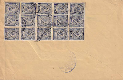 Local cover (1-20 g) from 25.01.1923 (12. Period) franked with 10 stamps a 2 Mark (=20 Mark) |