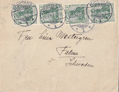 Foreign cover (1-20 g) from 24.03.1909 (1. Period) franked with 4 stamps a 5 Pfennig (=20 Pfennig) |