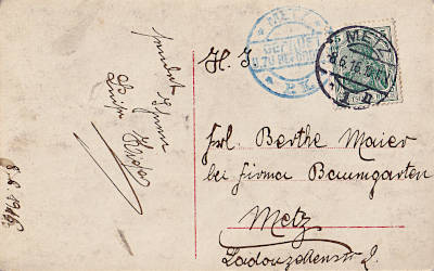 Local postcard from 08.06.1916 (1. Period) franked with one stamp a 5 Pfennig (=5 Pfennig) |