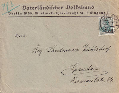 Inland printed matter (1-50 g) from 16.09.1920 (5. Period) franked with 2 stamps a 5 Pfennig (=10 Pfennig) |