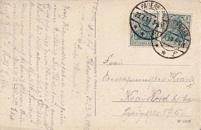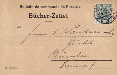 Foreign printed matter (1-50 g) from 27.09.1912 (1. Period) franked with one stamp a 5 Pfennig (=5 Pfennig) |
