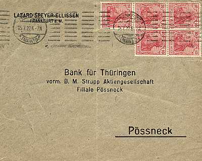 Inlandsdrucksache (1-20 g) vom 25.07.1922 (8. Periode) frankiert mit 5 Marken a 10 Pfennig (=50 Pfennig) |