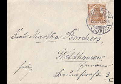 Inland cover (1-20 g) from 15.03.1917 (2. Period) franked with one stamp a 15 Pfennig (=15 Pfennig)