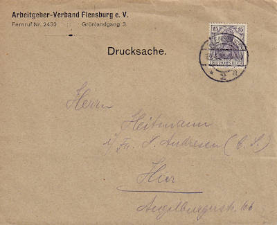 Inlandsdrucksache (1-50 g) vom 13.04.1921 (6. Periode) frankiert mit einer Marke a 15 Pfennig (=15 Pfennig) |