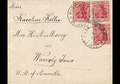 Foreign cover (1-20 g) from 13.10.1920 (5. Period) franked with 2 stamps a 40 Pfennig (=80 Pfennig) |