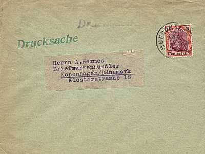 Foreign printed matter (1-50 g) from 28.08.1922 (8. Period) franked with one stamp a 1¼ Mark (=1,25 Mark) |