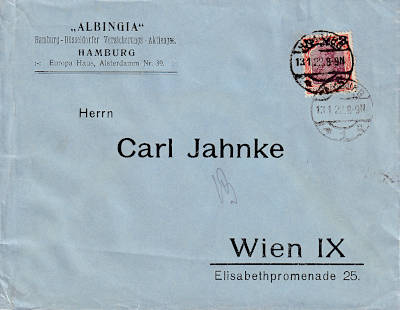 Foreign cover (21-100 g) from 13.01.1922 (7. Period) franked with one stamp a 3 Mark on 1¼ Mark (=3 Mark); to Austria the inland fee was valid |