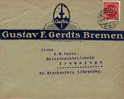 Inlandsdrucksache (1-25 g) vom 23.08.1923 (15. Periode) frankiert mit einer Marke a 200 Mark (=200 Mark) |