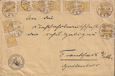 Ortspostkarte vom 24.09.1923 (18. Periode) frankiert mit einer Marke a 50 000 Mark (=50 000 Mark) |