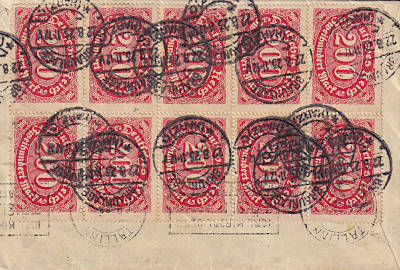 Ortsbrief (1-20 g) vom 02.08.1923 (15. Periode) frankiert mit 2 Marken a 200 Mark (=400 Mark) |