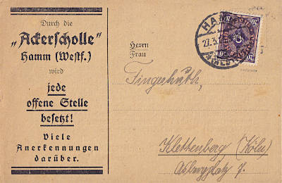 Inland printed matter (1-25 g) from 27.03.1923 (13. Period) franked with one stamp a 20 Mark (=20 Mark) |