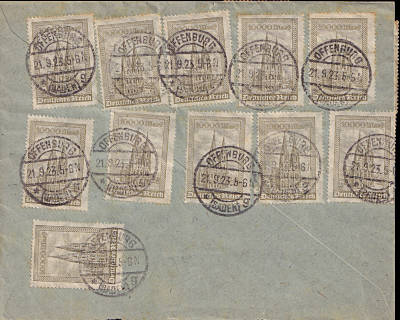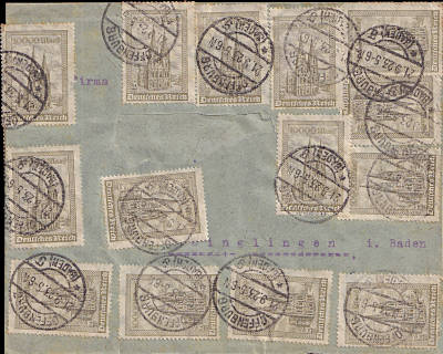 Inland cover (1-20 g) from 31.08.1923 (16. Period) franked with 2 stamps a 10 000 Mark (=20 000 Mark) |