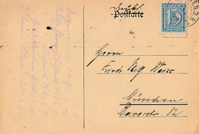 Local postcard from 10.09.1921 (6. Period) franked with 2 stamps a 15 Pfennig(=30 Pfennig)