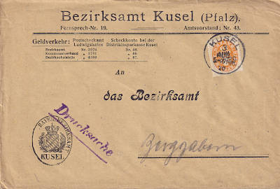 Inlandsdrucksache (1-50 g) vom 02.07.1920 frankiert mit einer Marke a 10 Pfennig (=10 Pfennig) |