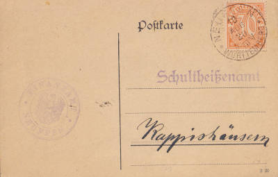 Inlandspostkarte vom 10.08.1920 frankiert mit einer Marke a 30 Pfennig (=30 Pfennig) |