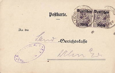 Inlandspostkarte vom 14.05.1920 frankiert mit 2 Marken a 15 Pfennig (=30 Pfennig) |