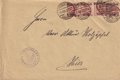 Ortsbrief (1-20 g) vom 26.02.1921 frankiert mit 4 Marken a 10 Pfennig (=40 Pfennig) |