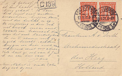 Auslandspostkarte vom 01.09.1921 frankiert mit einer Marke a 80 Pfennig (=80 Pfennig) |