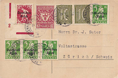 Foreign postcard from 21.02.1922 franked with 6 stamps a 40 Pfennig (=2,40 Mark)