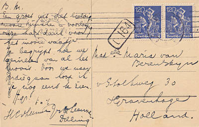 Foreign postcard from 19.04.1922 franked with 8 stamps (=2,40 Mark)