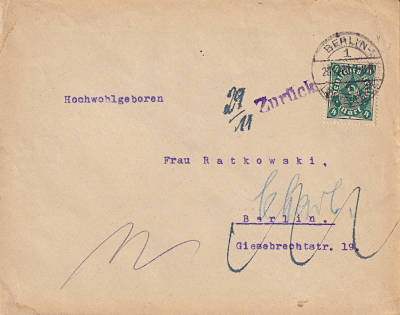 Local cover (1-20 g) from 28.11.1922 franked with one stamp a 4 Mark (=4 Mark)
