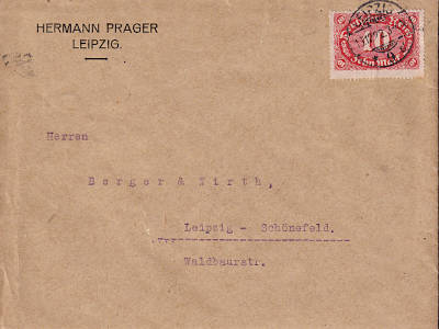 Ortsbrief (1-20 g) vom 16.12.1922 frankiert mit einer Marke a 10 Mark (=10 Mark)