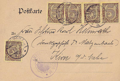 Inlandspostkarte vom 16.02.1923 frankiert mit 5 Marken a 5 Mark (=25 Mark)