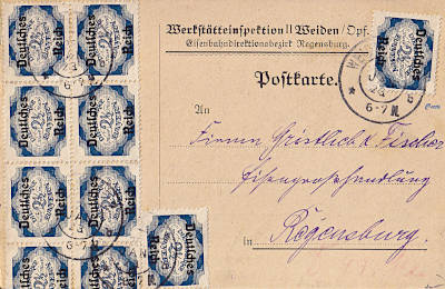 Inlandspostkarte vom 25.01.1923 frankiert mit 10 Marken a 2½ Mark (=25 Mark)