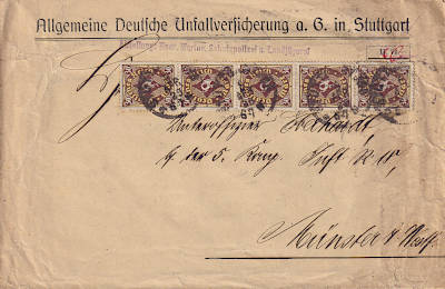 Inlandsbrief (1-20 g) vom 02.03.1923 frankiert mit 10 Marken a 10 Mark (=100 Mark) |