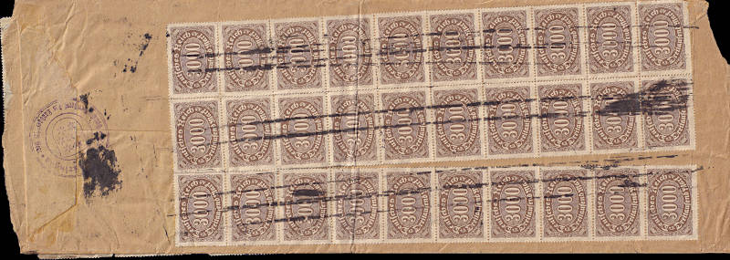 Inlandsbrief (101-250 g) vom 19.09.1923 frankiert mit 30 Marken a 3 000 Mark (=120 000 Mark)