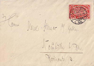 Inlandsbrief (1-20 g) vom 12.09.1923 frankiert mit einer Marke a 75 000 Mark auf 50 Mark (=75 000 Mark)