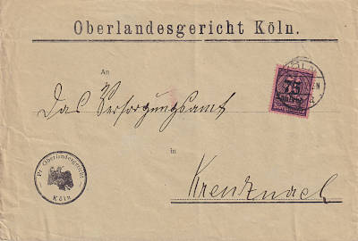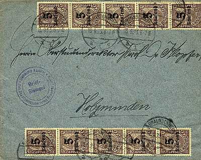 Inlandsbrief (1-20 g) vom 05.09.1923 frankiert mit 25 Marken a 3 000 Mark (=75 000 Mark)