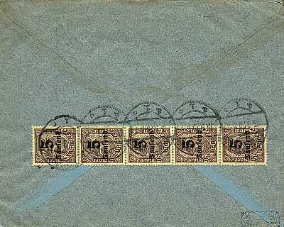 Inlandsbrief (1-20 g) vom 05.09.1923 frankiert mit 5 Marken a 15 000 Mark auf 40 Mark
