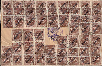 Local cover (1-20 g) from 11.09.1923 franked with 75 stamps a 400 Mark (=30 000 Mark) |