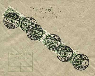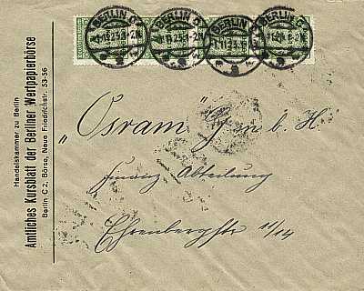 Local cover (1-20 g) from 01.11.1923 franked with 10 stamps a 4 Million Mark (=40 Million Mark)