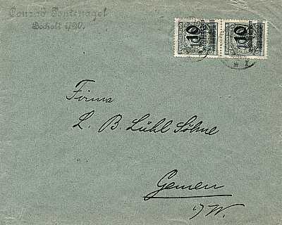 Inland cover (1-20 g) from 20.11.1923 franked with 2 stamps a 10 Billion Mark on 50 Million Mark (=20 Billion Mark) |