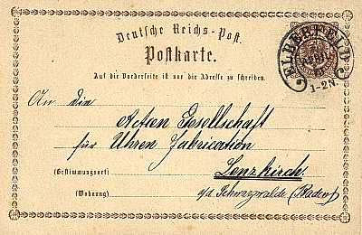Inland postcard from 18.02.1874 franked with one stamp impression a 2 Kreuzer (=2 Kreuzer)