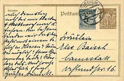 Postcard with one stamp impression a 25 Mark (=25 Mark)