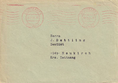 Stuttgart 8: Inlandsdrucksache (21-50 g) vom 01.02. mit rotem Einkreisstempel (bo3zbu) "STUTTGART No8/ (Datum)/ Gebühr bez./ 4 Rpf" |